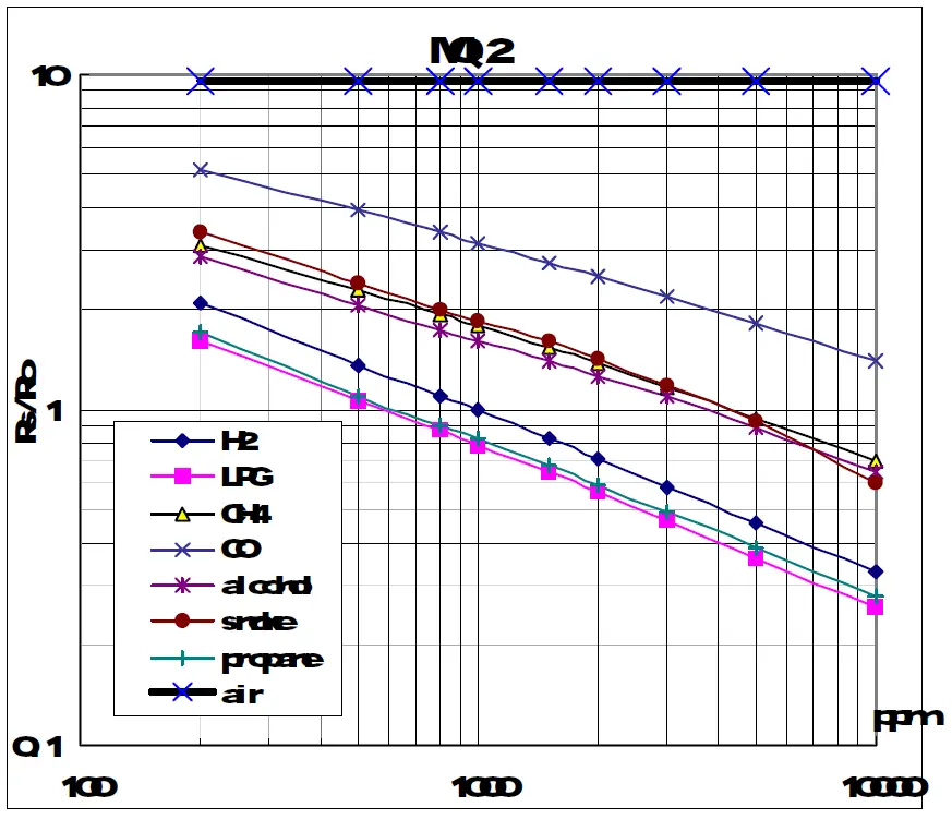 I was using your wiring and code with a MQ-5 and it worked fine! However, when I changed the MQ-5 with a MQ-2 – the same sensor you are using – I get a strange behaviour: LPG and CO values drop when the sensor is exposed to LPG / CO instead of rising which means, the values are going down to an e-05 value… Do you have any explanation for this? Do I need to do a 1 / [value] calculation to correct that?
