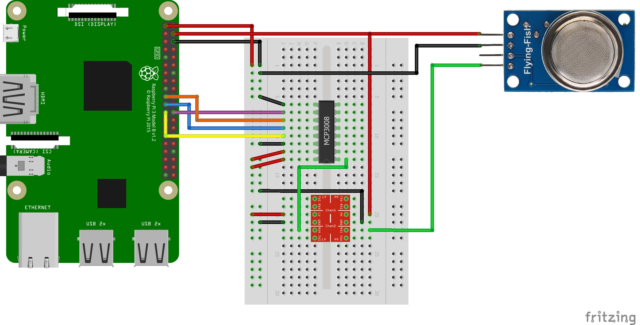 Connection between MQ-2 and Raspberry Pi