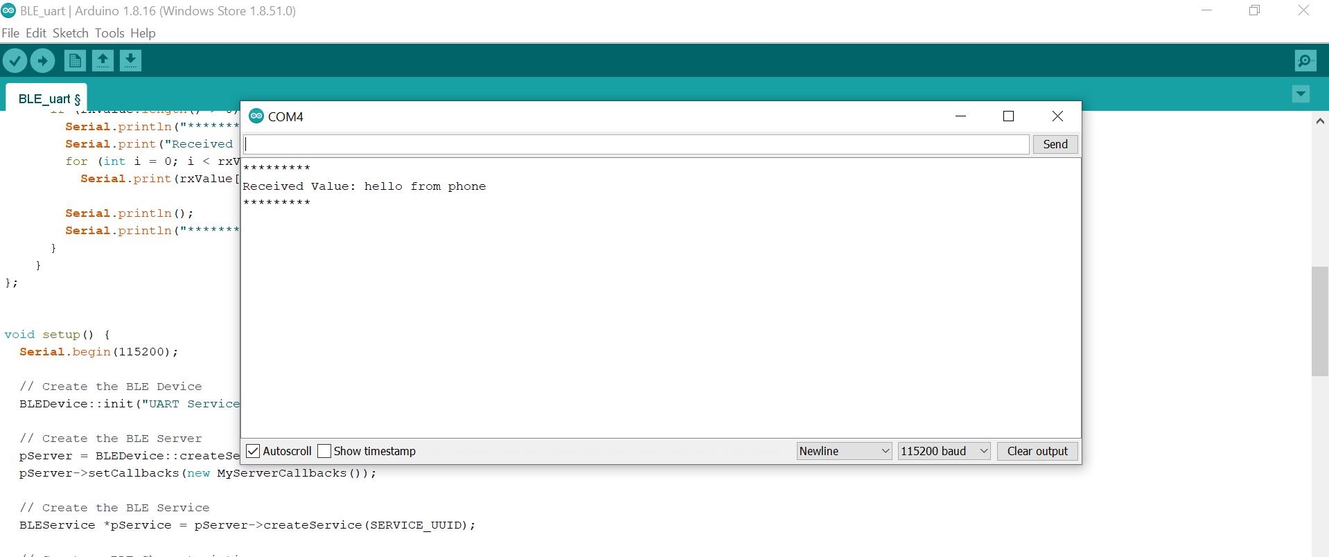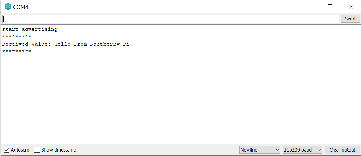 After connecting type, the value, you want to send to serial monitor. Your value will be sent to the serial monitor.