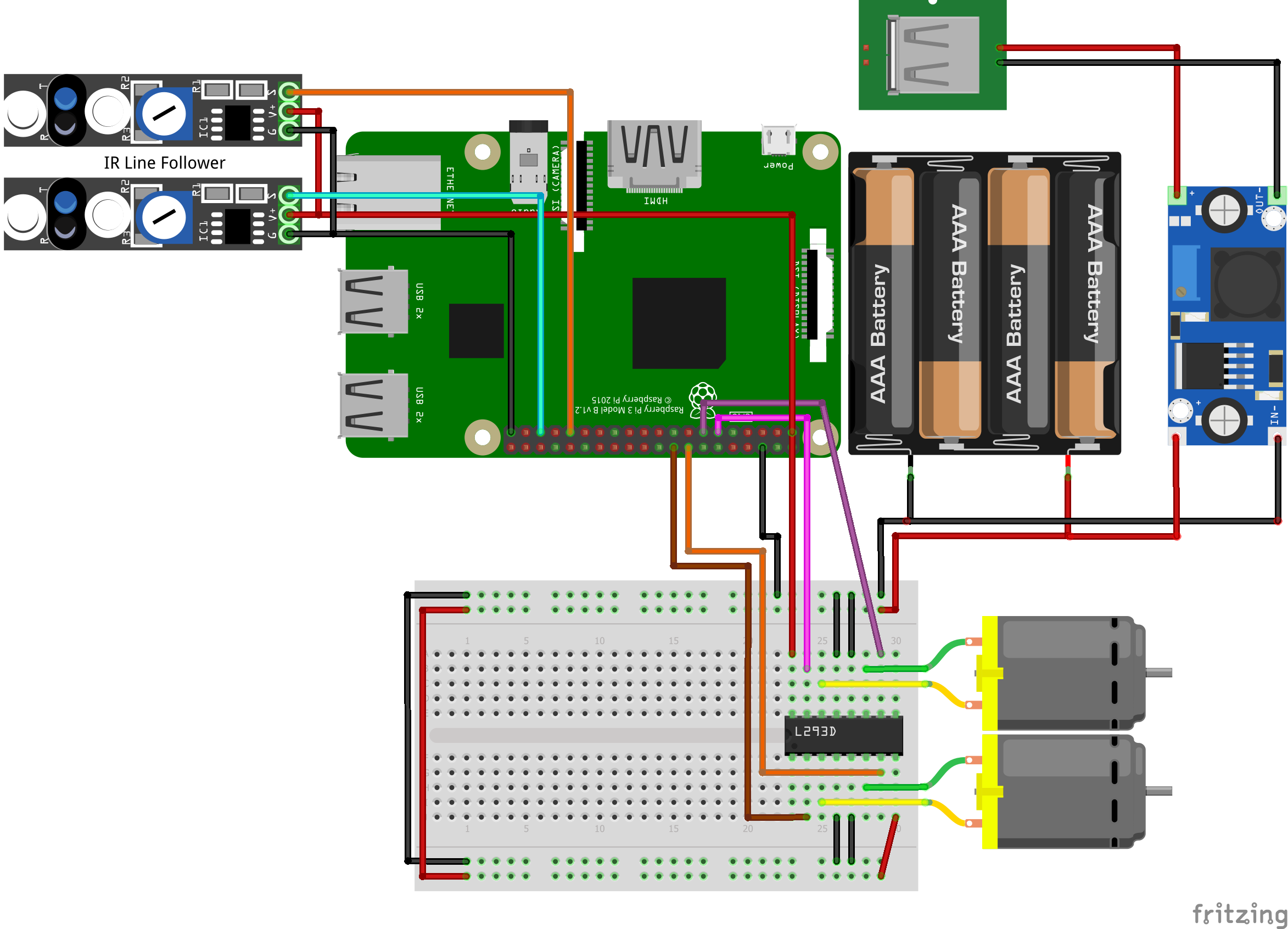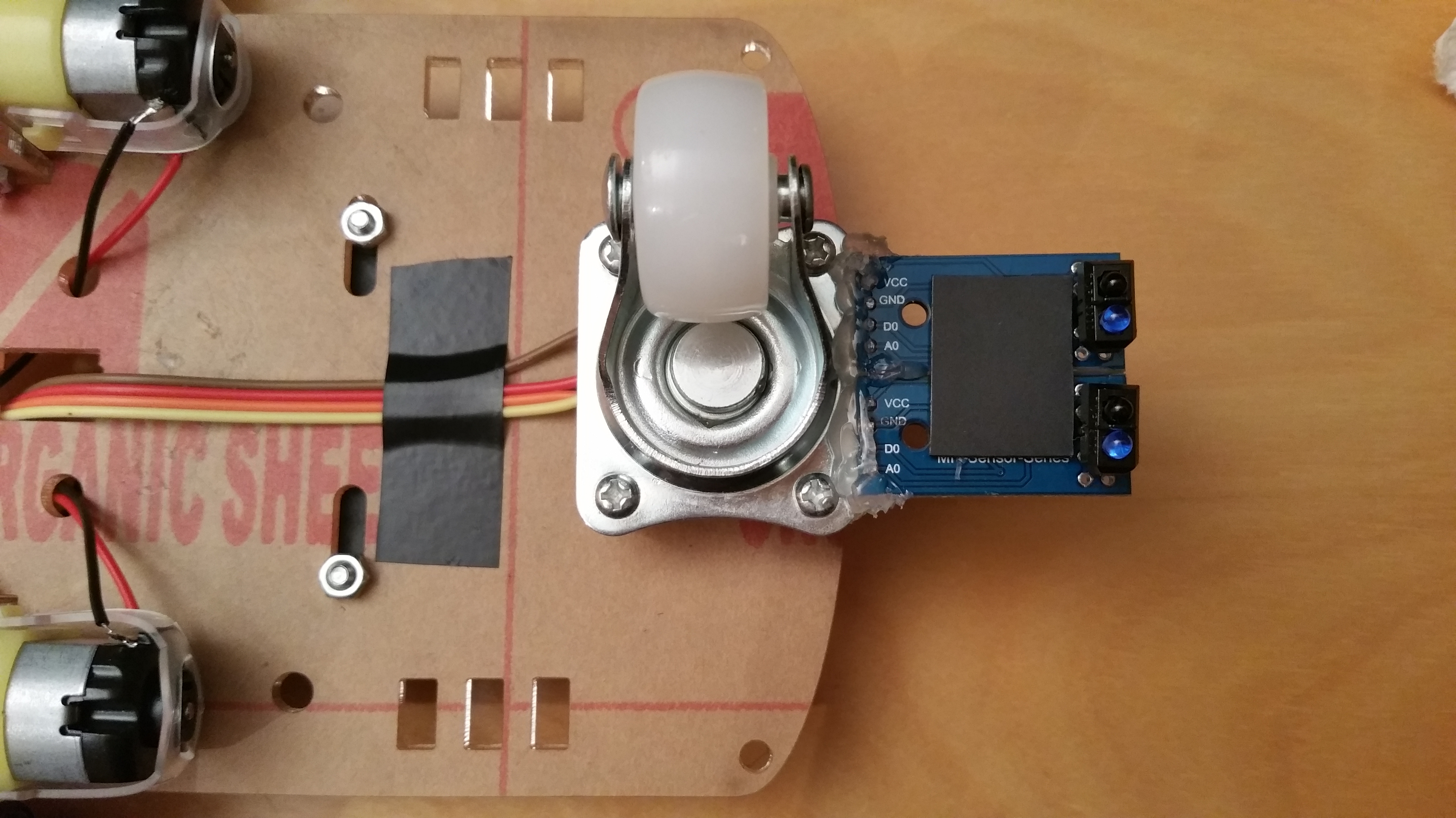 It is also possible to use more than two IR Line Follower sensors, but the code must then also be edited accordingly. If you are recreating the project the way I did it, it is advisable to stick with two sensors.