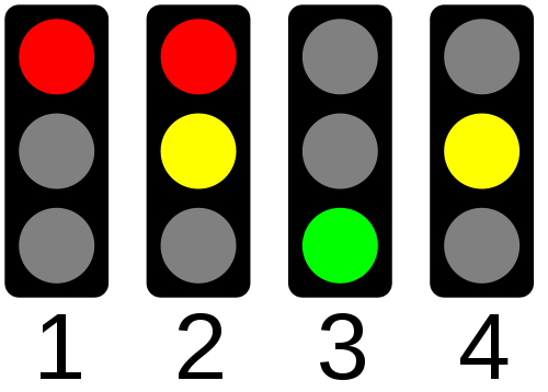 It continues with the second part and the actual Traffic Light Circuit. Let’s take a look at the various Traffic Light Signals on Wikipedia. We want to recreate them at the push of a Button.